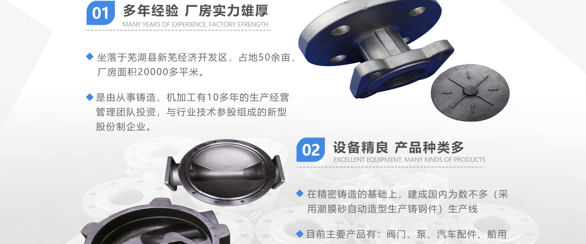 安徽偉工機械科技有限公司,坐落于安徽蕪湖新蕪經濟開發區,是一家専業從事鑄造產品設計、研發、生產、銷售于一體的企業,公司為客戶的產品提供多樣的技術支持與設計,公司主要鑄造技術有潮模砂鑄造、硅溶膠精鑄工藝。主要產品有:不銹鋼閥門配件、泵閥配件、汽車配件、工業管道配件、工程機械配件、汽車配件等。材質為:低合金鋼、304、316、316L、鉻鉬鋼、哈氏合金、碳鋼、雙相鋼等。公司已先后通過ISO9001和TS16949等多種體系審核,以完備的管理手段和齊全的檢測設備滿足客戶需求,進的設備,専業的技術,嚴謹的管理,穩定的質量。服務客戶,鑄造未來,偉工誠摯的歡迎新老客戶共同商洽合作